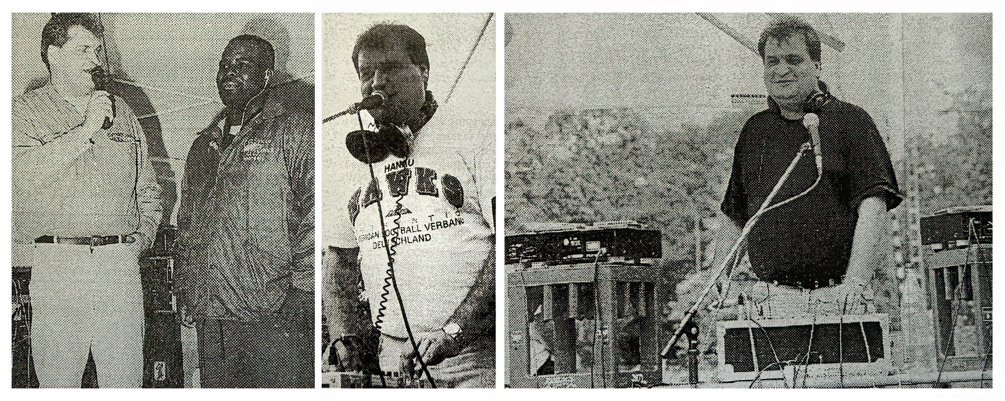 Fotos: 1993 mit Hawks-Headcoach Lawrence Rhone / DJ Arnie 1995 / Pregameshow 1996 (Archivfotos)