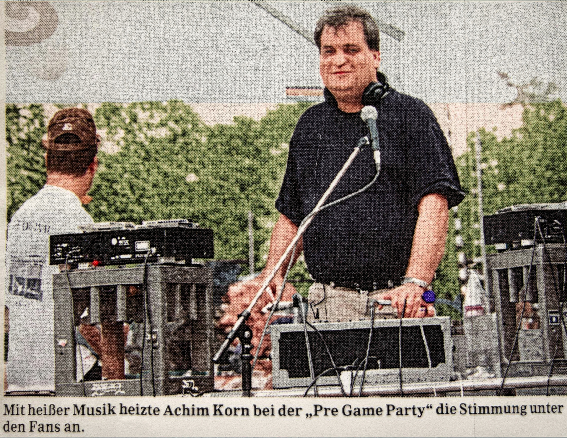Achim Korn a.k.a. „DJ Arnie“ im Jahre 1996 im Vorfeld eines Spiels der Hanau Hawks
